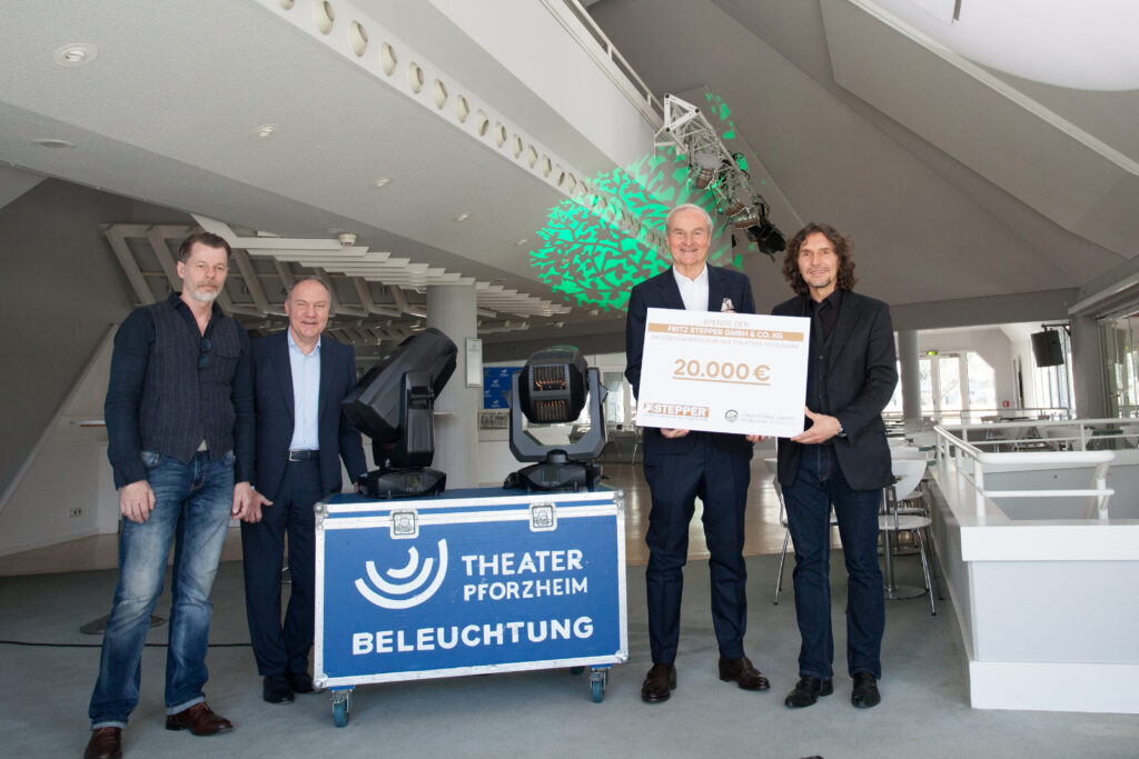 Pforzheim. Die Firma Fritz Stepper GmbH & Co. KG und ihr Geschäftsführer Michael Stepper sind bereits seit vielen Jahren begeisterte Freunde und großzügige Unterstützer des Theaters Pforzheim. Auch in diesem Jahr konnte sich der Förderverein des Theaters Pforzheim wieder über eine generöse Spende in Höhe von 20.000 Euro freuen. Besonders erfreulich für alle Beteiligten war die Sinnhaftigkeit der Spende – denn es wurden zwei Scheinwerfer für die Bühnenbeleuchtung angeschafft, die die nachhaltige technische Ausstattung nun um ein weiteres Modul ergänzen. „Es ist mir eine große Freude, hier mithelfen zu können“, so Michael Stepper, Geschäftsführer der Fritz Stepper GmbH & Co. KG., „die Kultur ist ein sehr wichtiger Teil unserer Gesellschaft und das Theater Pforzheim bietet hervorragende Qualität, die es unbedingt zu unterstützen gilt.“